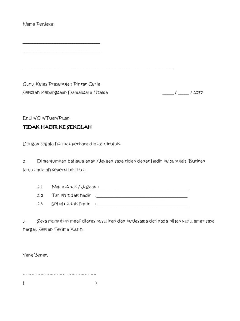 I contoh surat tidak hadir ke sekolah cuti sakit ii urusan keluarga.